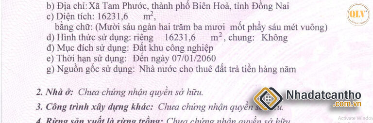 Loại đất: Đất cụm công nghiệp, đã trả tiền sử dụng đất một lần, thời hạn đến năm 2060