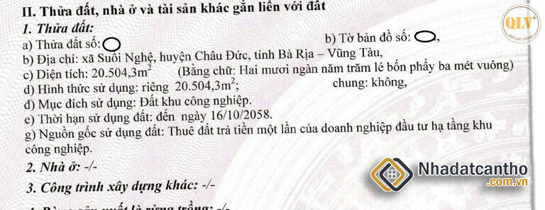 Đất khu công nghiệp, hình thức sử dụng: trả tiền một lần
