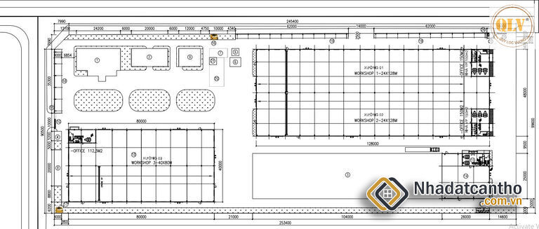 Tổng diện tích xây dựng: 9.344m² (gồm 2 nhà xưởng)