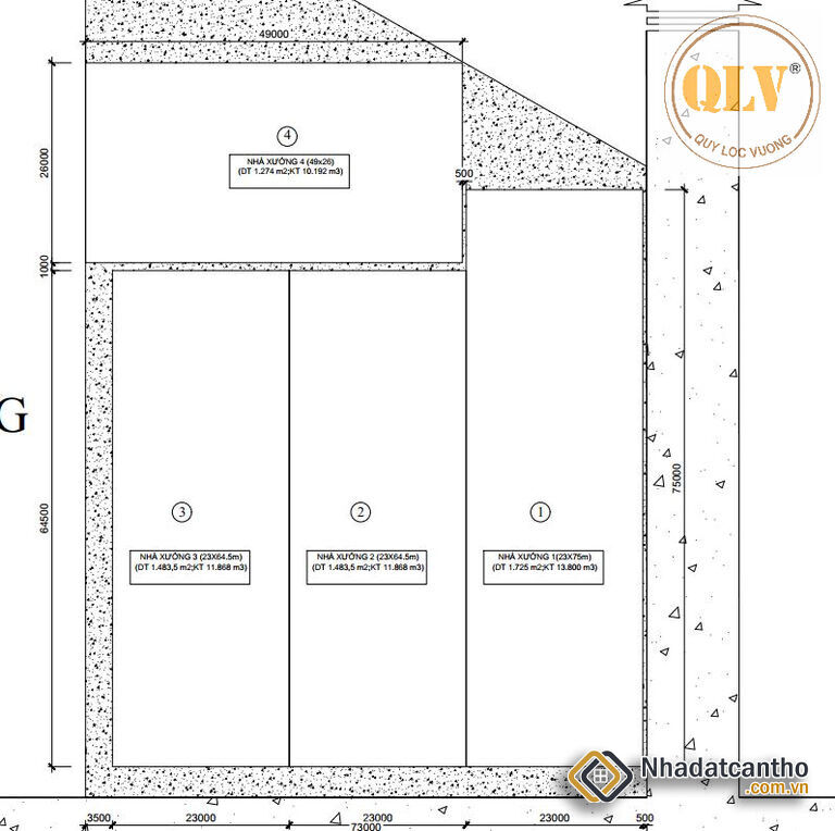Xưởng 1 (X1): 1.725m² (23m x 75m)