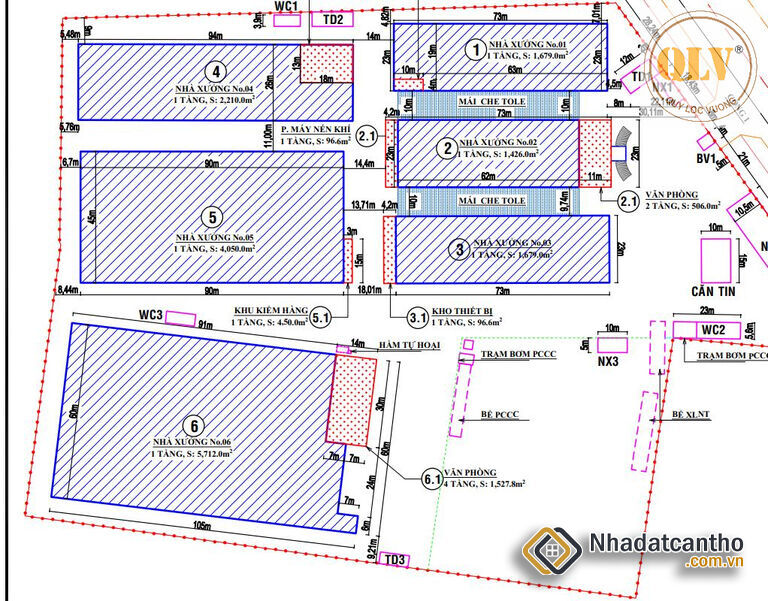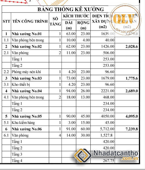Xưởng 6: 5.712m², văn phòng 1.527m²