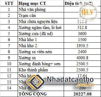 Diện tích nhà xưởng xây dựng: 20.227m²